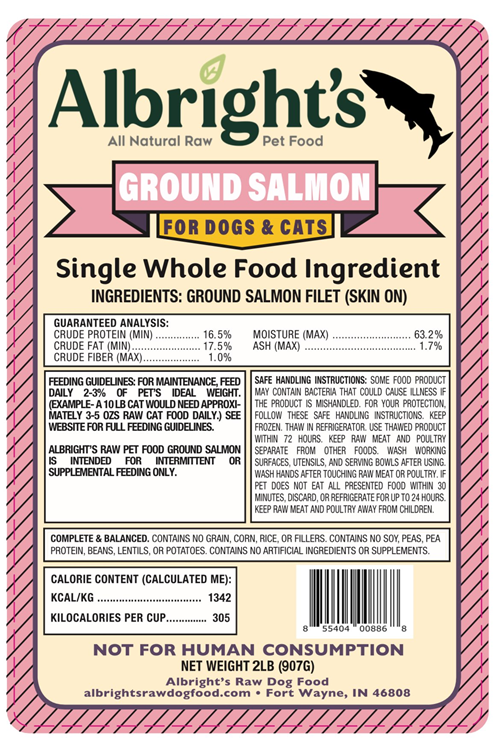 Raw Salmon PMR Pet Food, 30 lb. Case (15 x 2 lb. rolls)